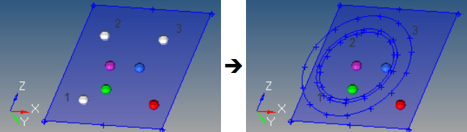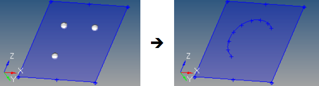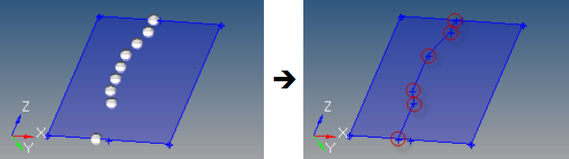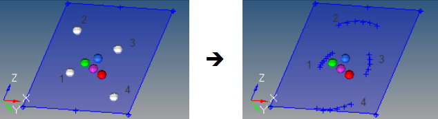 - Define a location on each arc center. A separate arc is created through each node in the list.