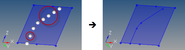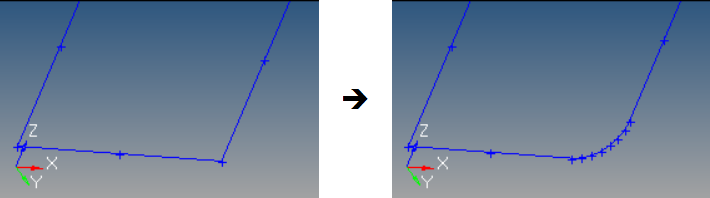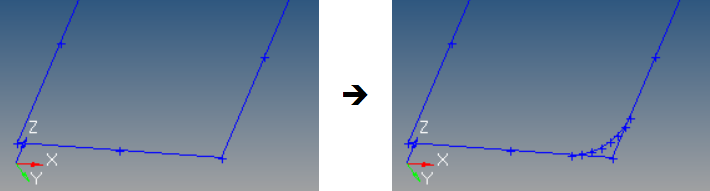 Figure 10. . Aspect is set to 5, the large gap (left) results in a joint (right) because it is more than 5 times the length of its neighbors - Linear angle