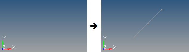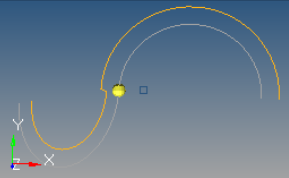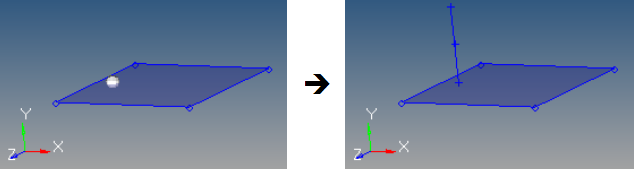 Figure 42. . The line is created at the input point, normal to the nearest spot on the line, and (in this case) along the plane for which the Z-axis is the normal (in other words, the X/Y plane).