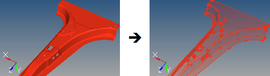 - The direction of the shell face normals are ignored and a feature line is created between any two shell faces whose normals are more than the specified feature angle or less than its inverse (the feature angle minus 180 degrees).