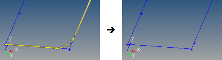 Figure 35. . When trim original lines is active, the input lines are trimmed to the start and end of the fillet.