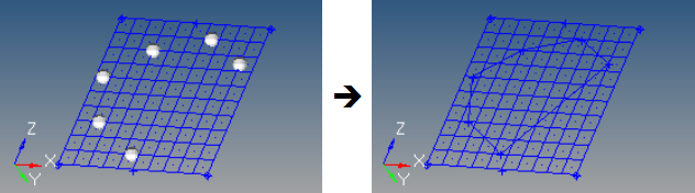 A line is created at each node by dragging the nodes the specified distance along the given vector.