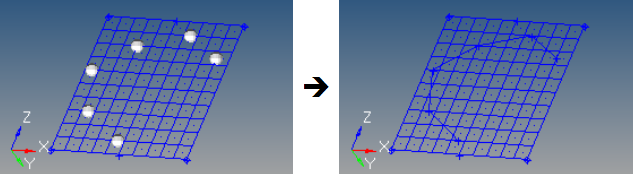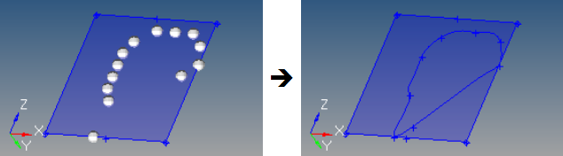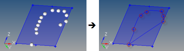 Figure 5. . Thirteen input nodes are simplified to seven points, through which a closed line loop is fit.