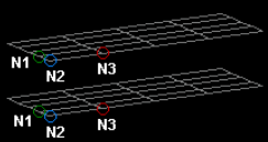 Define the from line's alignment by clicking N1 and selecting three alignment nodes on the first set of elements.