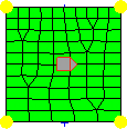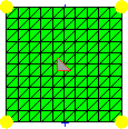 Use the Checks subpanel to use the functions of the Check Elements panel on a newly-generated mesh before storing it in the database. The tests are the same as on the Check Elements panel, and elements that fail a quality test are highlighted in red. Only displayed elements are tested; the display of elements is controlled by the local view panel. The Checks subpanel operates on a by-face method. The active highlighted face serves as a frame of reference for meshing, smoothing, and display operations. To select another face, select the face's icon in the modeling window.