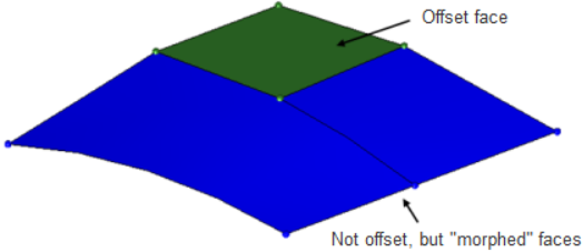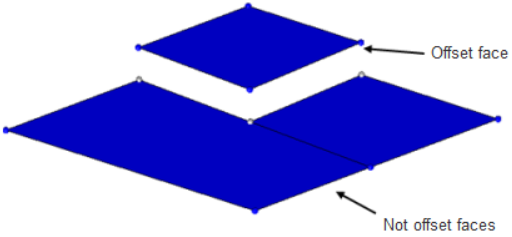Use the Offset subpanel to offset a group of surfaces by a given distance along the normals of those surfaces. A negative offset value can be used to offset these surfaces in the opposite direction of the surface normal. The topology of the surface edges (free, shared edges, and so on) is maintained during the offset function. Some individual surfaces will be trimmed or extended to maintain the connectivity. This function moves the selected surfaces to the new location.