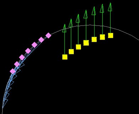 ![]() Figure 4. Arc Angle Shape Change Applied Simultaneously with a Radius Shape Change. In the left figure the two shapes are applied with no compensation. Notice how the sides of the mesh no longer line up with the axis of the local coordinate system. In the right figure the compensation shape has been applied. Notice how the sides of the mesh now line up with the center axis of the local coordinate system. If both shapes are converted into non-linear design variables at the same time, the compensation design variable will be generated and integrated into the optimization automatically. When applied during optimization, the non-linear shapes will be close to, but probably not exactly aligned with, the intended node paths. Although the generated shapes and equations have been optimized to minimize the amount of error between the intended node paths and the actual node paths it is not possible to precisely mimic every non-linear shape using a combination of linear ones. However, this feature should allow sufficient fidelity for most optimization applications. Shapes to be converted into non-linear shapes perform best when they have either a lower bound or upper bound of 0.0, but good fidelity can be achieved for shapes which have a negative lower bound and positive upper bound. However, non-linear shapes which sweep out an arc of more than 90 degrees may not give good fidelity for intermediate values. |