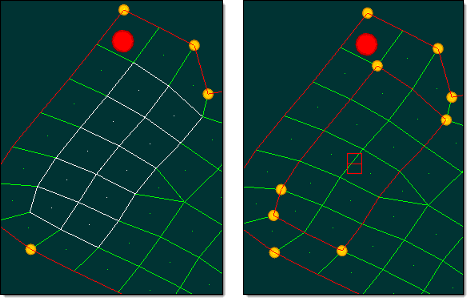Figure 3 shows a 2D domain that has been created from the selected elements. You only need to select the elements that you want to be in the new domain. The elements are automatically assigned to the new domain, edge domains are created around it, and handles are added at appropriate positions on the edge domains. The 2D domain created allows for the creation of a bead by moving the two handles at the ends of the edge normal to the plane of the elements.