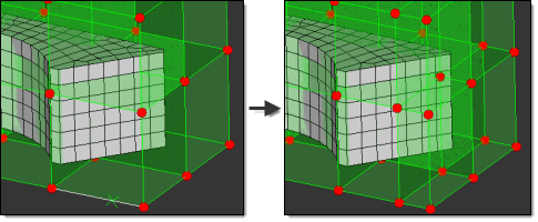 If tangency is selected, a continuous tangency condition will be applied across adjacent edges for the new morph volumes. Tangency ensures smooth morphing between morph volumes.
