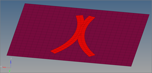Use the Composites panel to assign and review the element material orientation of a mesh of shell and continuum shell