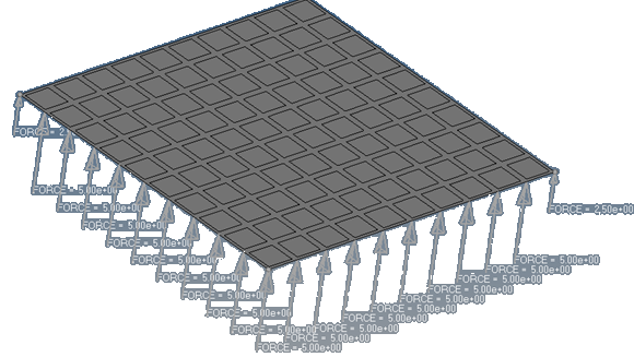 Figure 3. . Total load is distributed to nodal forces based on the element edge length and order of the element. The summation of the loads should match the total load applied.