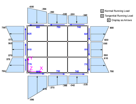 - Panel Load: The force/unit length along and perpendicular to the boundary edges.