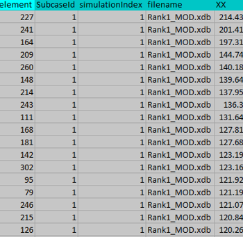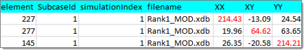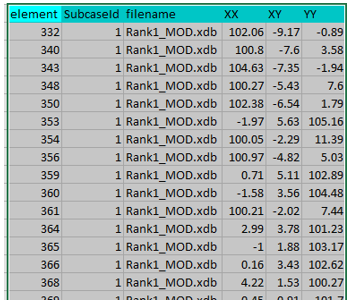 Figure 7. For each Element the Maximum XX Component and the Loadcase where it Occurs is Exported