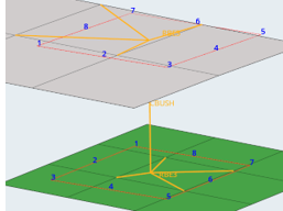 On each pierced shell, the shell’s material system is extracted and an extraction area is created to compute fluxes and moments. The size of the extraction area is driven by the rivet diameter and material scale factor.