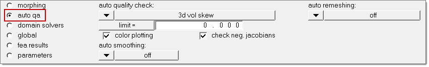 During morphing the element quality can be monitored by activating the auto quality check function, selecting an element criteria and defining a threshold.