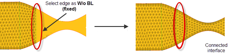 - If this option is checked, the node seeding on the edge without BL is maintained as much as possible. The nodes on the non-BL boundary which are located inside the BL will not be maintained, only the nodes which are located outside of the BL will be maintained.