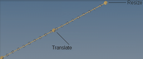 The center point can be freely dragged anywhere in space. The length and orientation of the line will remain unchanged as the manipulator is moved as a rigid entity. In addition, the end points of the manipulator will move identically to the center point (same translation).