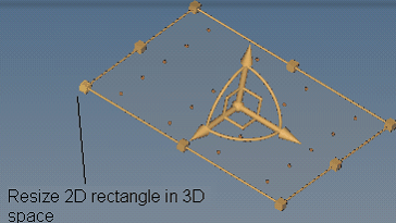 Each arrow can be freely dragged along a straight line. The entire rectangular area will be translated accordingly, while its size and shape will remain the same. The arc handle connecting the arrows can also be grabbed to allow for the rotation of the arrows and rectangular area around the normal to the plane. The square handle can be freely dragged on the plane of the area to reposition the rectangular area.