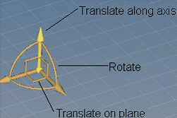 The center point of the manipulator can be dragged freely anywhere in space. The rake outline receives the same transformation so that the manipulator remains centered. The section cut is dragged in its normal direction, while the manipulator is moved on the plane of the section based on the movement of the mouse. Each arrow can be freely dragged along a straight line; only the manipulator's location on the section plane will change, unless an arrow normal to the section is the one being dragged. The arc handle connecting arrows can be grabbed to allow the rotation of the arrows and section cut around the normal to the plane. The square handles connecting arrows can be freely dragged in space to modify the location of the section cut. Moving the manipulator in the plane of the section does not affect the location of the section cut itself, simply the base location of the manipulator.