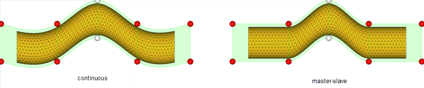 How mesh deformation propagates through adjacent morph volumes can be defined by setting different types of tangencies.