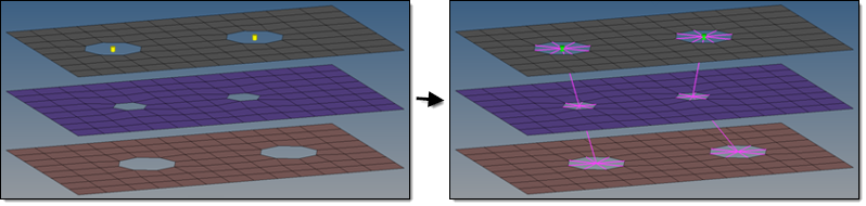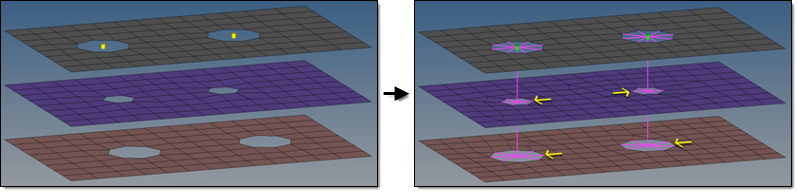 - Use for realizations which do not need a node connection, and the connection is primarily defined via a solver-specific card or the nodes which need to be connected are defined by a cylinder, such as Bolt (cylinder spring) for Radioss.