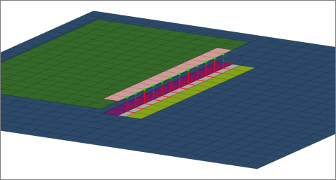 Figure 28. Original Model before Realization. Initial situation with one element row marked for the lap weld and two