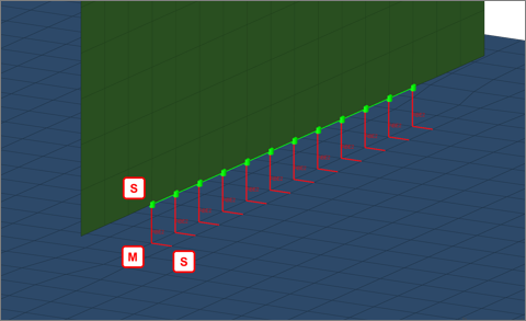 The image below shows where the main and secondary nodes of the rigid elements will be
