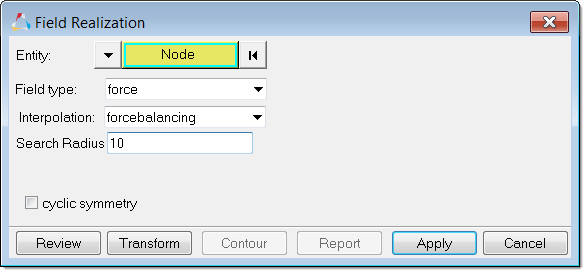In the Field Realization dialog, define the
