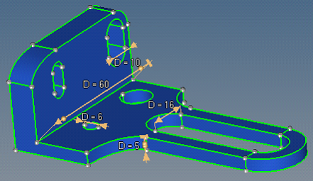 For a selected surface that is not adjacent to the dimension manipulator