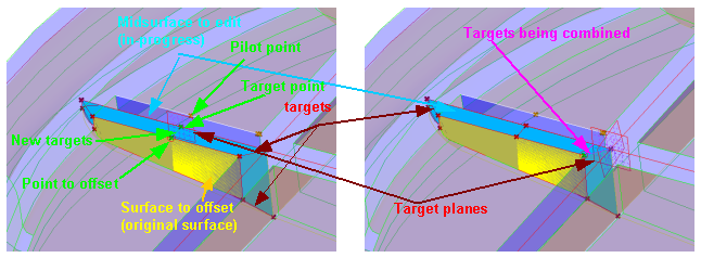 Planes parallel to the offset surface drawn at target points, which can be displayed for reference.