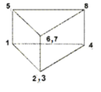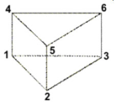 Degenerated brick elements are either Hex8 or Hex20 elements, collapsed into a wedge element (Penta6 or Pet15). Penta6 (Element configuration 206) is a 3D, 1st order, triangular prism shape element with a 6 noded order as shown inFigure 1. Hex8 (Element configuration 208) is a 3D, 1st order, brick shape element with a 8 noded order as shown in Figure 2. The Degenerated Brick (Element configuration 206) option is a 3D, 1st order, triangular prism shape element with a 8 noded order as shown in Figure 3.