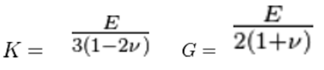 Where E is Young's modulus, ρ is Material density, 𝜐 is Poisson's ratio, K is Bulk Modulus, and G is Shear Modulus..