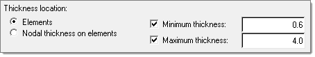 You can perform thickness operations on elements with card image SHELL and TSHEL for the attribute "T". You also perform thickness operations on components that have the card image SHELL, TSHEL, or MEMBR for the attribute H. There is no impact on thickness for the TCONT contact.