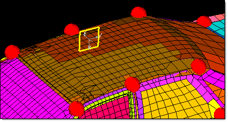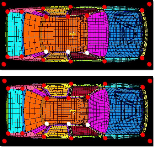 Figure 2. Using 1-Plane Symmetry. Three handles on the right hand side of the roof are selected and moved towards the centerline. HyperMorph automatically moves the corresponding nodes on the left hand side of the roof in a symmetric fashion.
