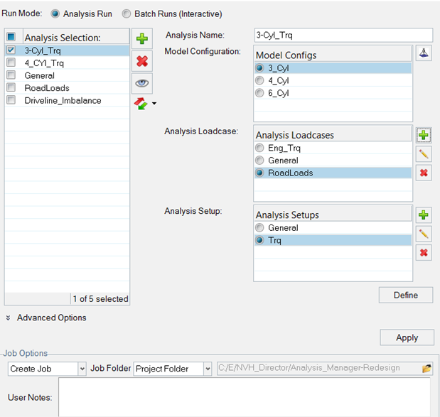 Any Analysis is defined as a combination of model configuration, analysis loadcase and analysis set-up.
