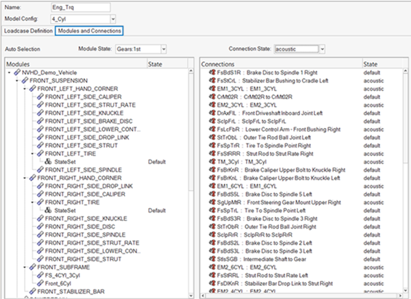 You can select module states and connection states depending on the loadcase definition.