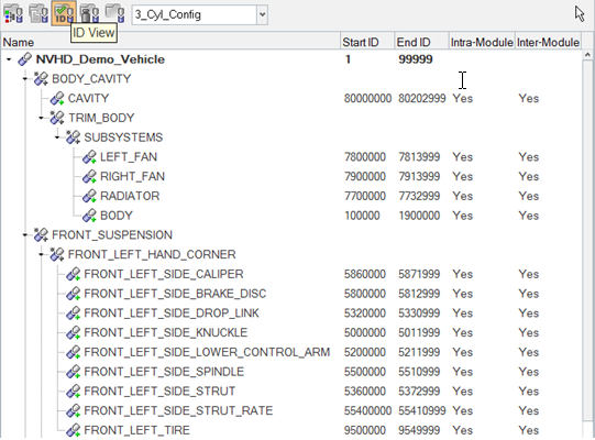 The ID View shows the summary of ID ranges assigned to modules with representation in the