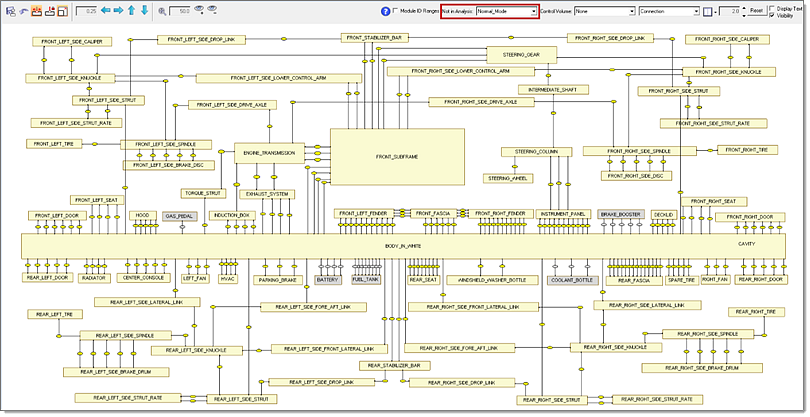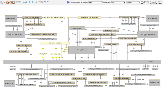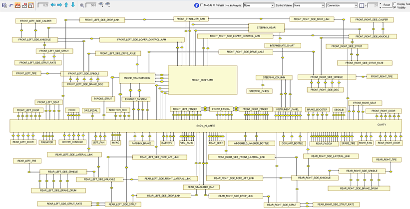 It is one of the three views in the assembly environment, along with the graphics view and the browser view. The network view is the best way to show coincident connections and provides an easy way for checking the number of connections between any two modules, reducing modeling errors.
