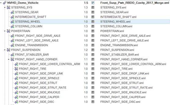 The Version Management tab allows you to do data management and versioning of CAE files (assembly-XMLs, sub-XMLs and representation files). There is an option in NVH Preferences to turn ON/OFF the Version Management feature.