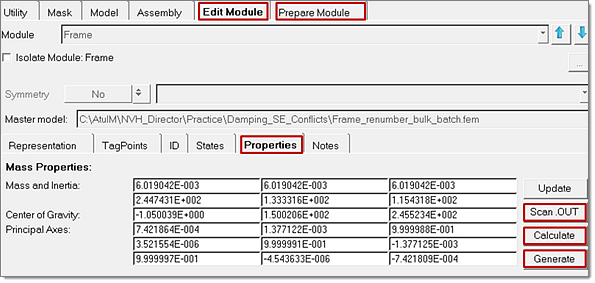 - Extract module mass, moment of inertia and center of gravity information in prepare module mode.