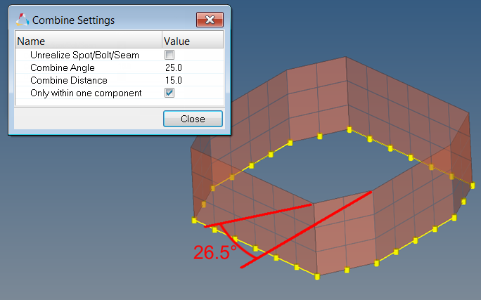 | Combine Angle | Maximum allowed deviation angle measured between three
