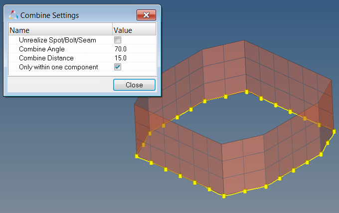 | Combine Distance | Maximum distance two consecutive connectors must be from each other in order for the connectors to be combined. |