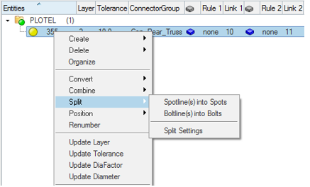 Split spot or bolt line connectors into individual single point connectors using the Split option.