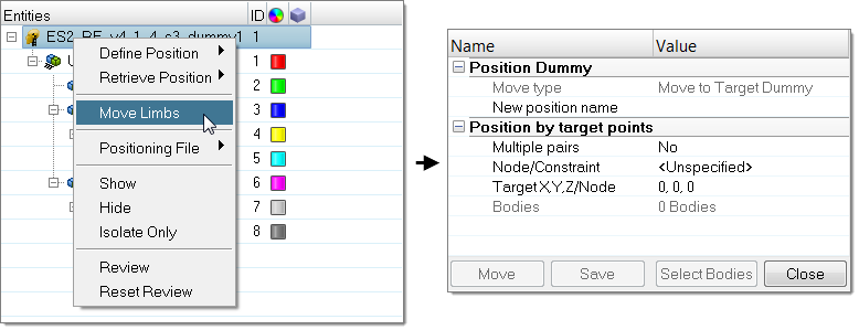 - In the Dummy Browser, right-click and on the dummy and select Pre-Simulation from the context menu.