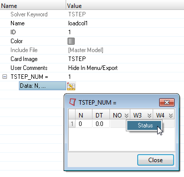 Figure 8. Density Info for ABAQUS_MATERIAL - Certain control cards make use of unstructured tables. In these cases, array