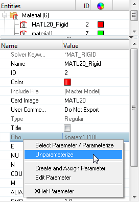 Figure 32. Parameter Rho is being Unparameterized with the Parameter param1.