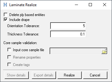 - Drape data contains spatially varying changes to the nominal ply orientation and thickness. Frequently, this causes laminate realization to generate a property card per element. It is possible to reduce the number of properties created by combining elements with similar properties with a given tolerance. These two tolerances are used in the reduction of the number of properties.
