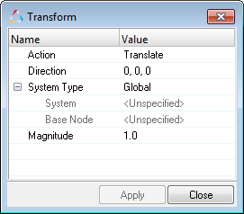 Translate, Rotate, Reflect, Scale, and Position. The Transform tool is automatically invoked on the creation of a Part Instance. Transformations are performed on the contents of