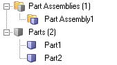 2. Flat Part View. Displays all entities, with the exception of components, in a flat list. Part Assemblies and Parts are logically grouped into their own collectors.