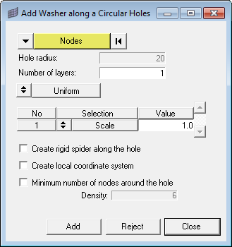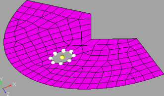 Use the Add Washer utility to create one or more layers of washer elements around a circular hole in an existing mesh.